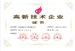 高新技术企业证书 发布时间: 2017-07-12 14:44:57 发布网站: 中国电力建设招标网