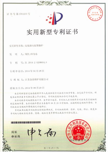 产品名称: 实用新型专利证书1 |