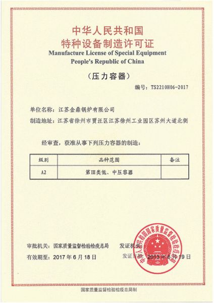 | 销售单位: 江苏金鼎锅炉有限公司 |