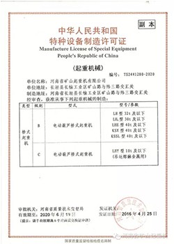 电动葫芦许可证 发布时间: 2017-07-20 16:19:13 发布网站: 中国电力建设招标网
