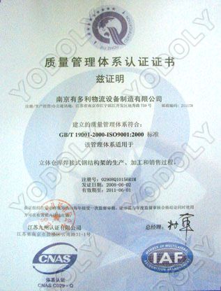 | 持证单位: 南京有多利物流设备制造有限公司 |