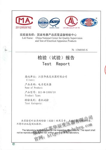 检验报告S11-1000(10) 发布时间: 2017-08-07 16:38:49 发布网站: 中国电力建设招标网