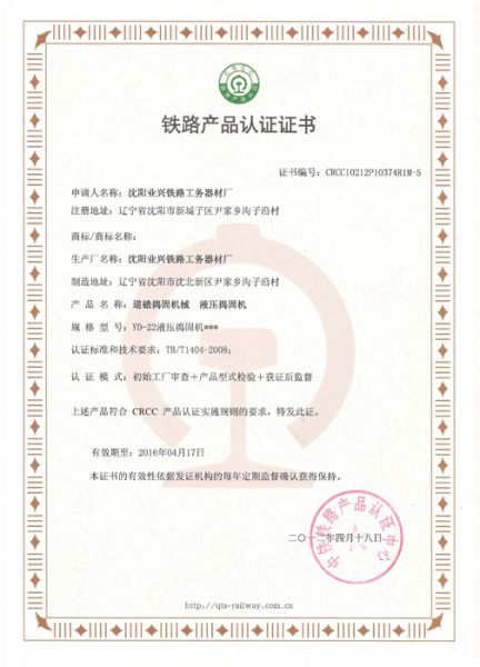 产品名称: 铁路产品认证证书8 |